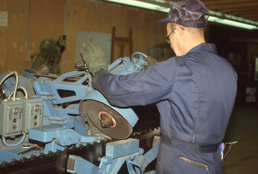 The MFRS sawmill served the school and its students faithfully for many years, but early in the 1970s the idea of a sawmill training school for industry was conceived. This would eventually prove to be the death of “the little mill that could,” for it was quickly going the way of the Model A Ford, the iceman, and the butter churn. Part of the catalyst for an expanded sawmill training program resulted from industry’s acceptance of Donnie Clark’s “saw doctor” courses. Donnie began as a contract instructor for MFRS in 1975 and taught courses in saw filing and maintenance. He and his noisy troop of learners were ensconced in a makeshift filing room in the basement of the McCormack Building. On many days the whole school reverberated to the clanging whacks of the apprentice saw docs as they hammered their saws into shape. Ironically, I suppose, we students were also being hammered into shape upstairs – usually a much quitter process.